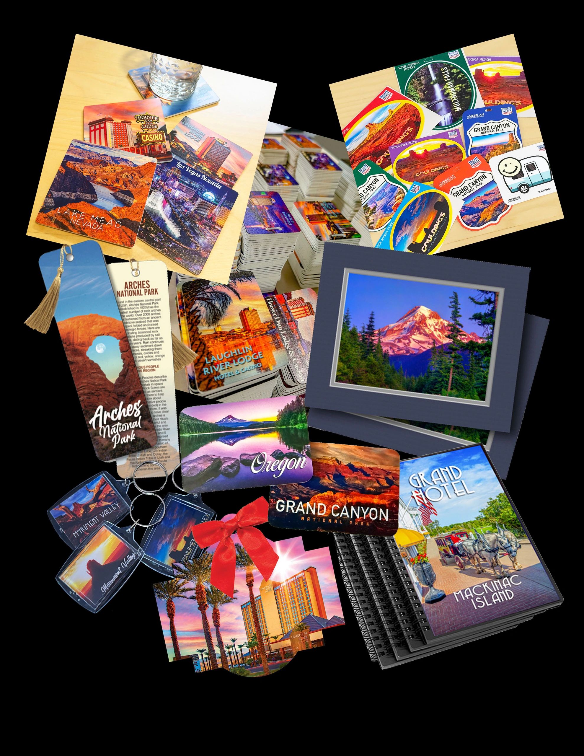 Magnets, Stickers, Bookmarks, Notecards, Postcards, Calendars, Placemats, Buttons, Journals, Coaster, Keychains, Luggage Tags, Gallery Prints